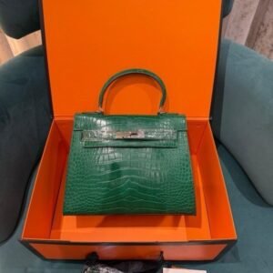 Hermes Blanc Crocodile Niloticus Green Encrusted Birkin Bag With OG Box & Dust Bag(1028 Green)