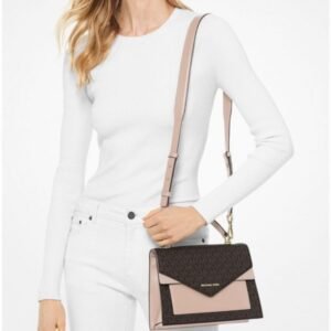 Michael-Michael-Kors Cora Medium Signature PVC Zip Pouchette Crossbody Bag Brown with box 376(BR)