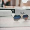 Branded Rb Gold Blue Aviator Sunglasses (With Original Kit)
