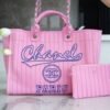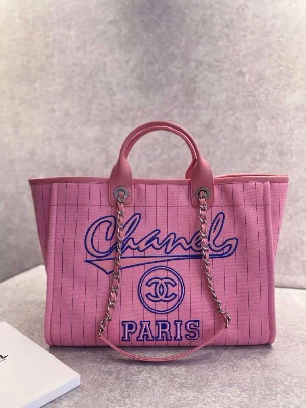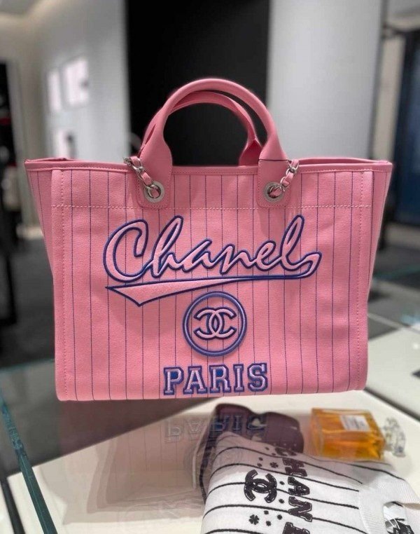 CHANEL PARIS STRIPED PINK REMUIM TOTE BAG