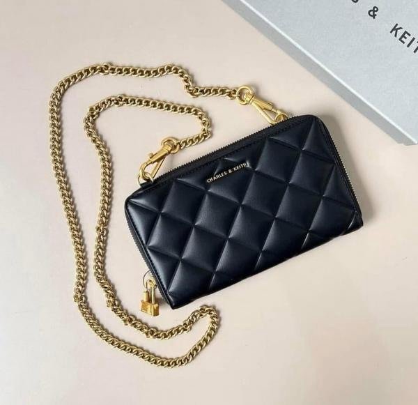 Charles & Keith CK Chain On Wallet With OG Box & Dust Bag (Black – 859)