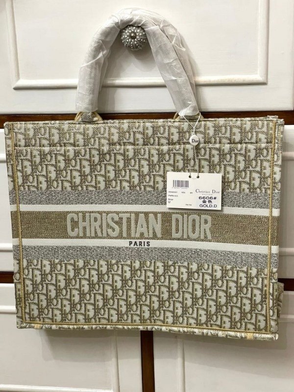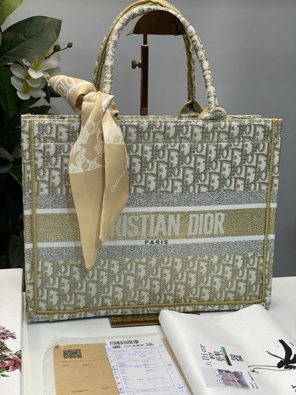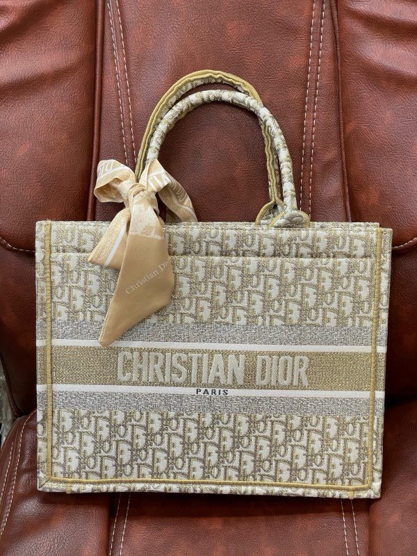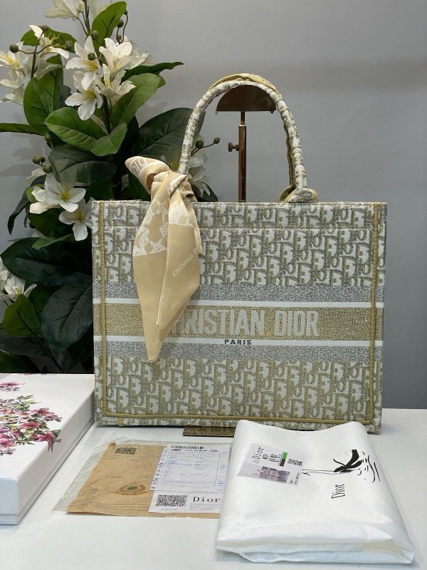 Christian Dior Book Tote Oblique Embroidery With OG Box & Dust Bag & Scarf (Gold-M929 41Cm)
