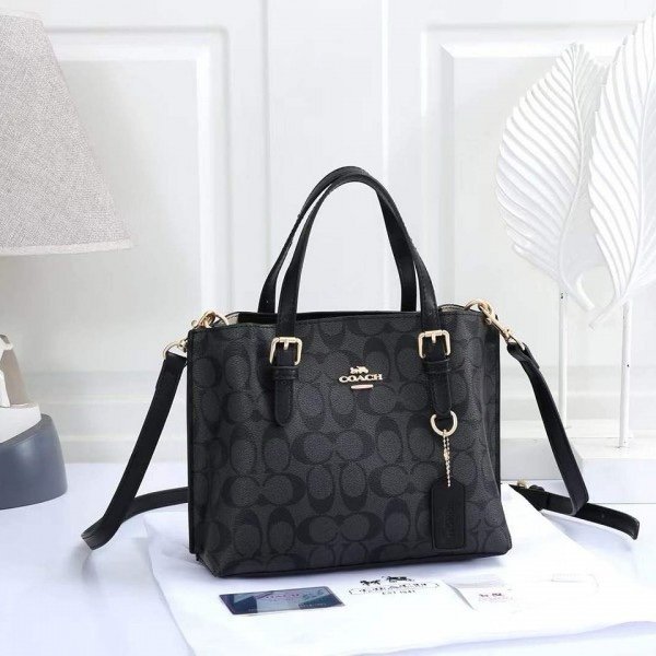 Coach Mollie Leather Tote Bag With Dust Bag & Shoulder Strap (C23021_Black_Black)(LB)