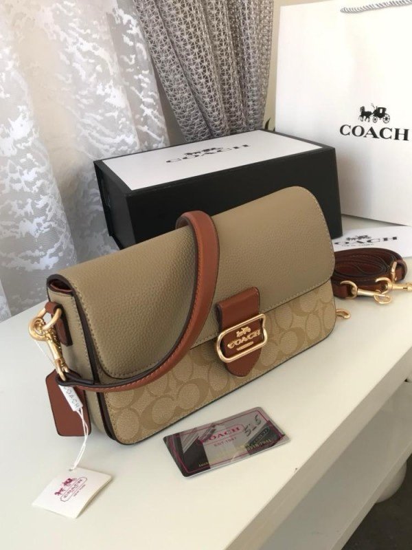 Coach Morgan 27 Shoulder Bag With OG Box & Dust Bag (5710_Apricot_Khakhi)(LB)