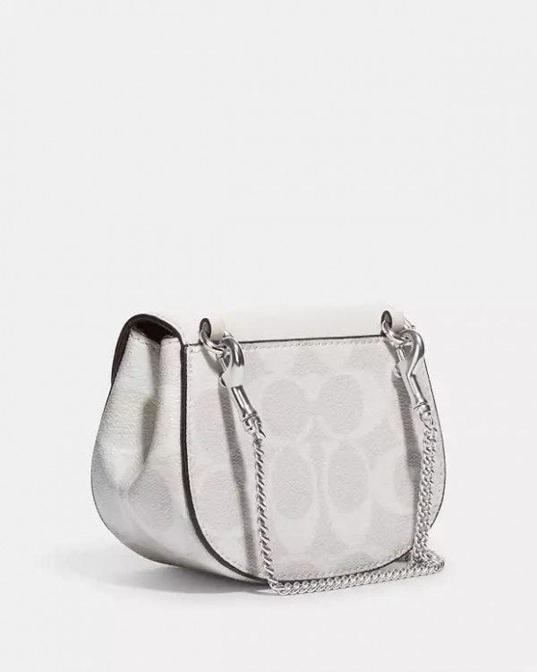Coach Morgan Card Case On A Chain In Signature Canvas White CK439 With OG Box & Dust Bag(LB)