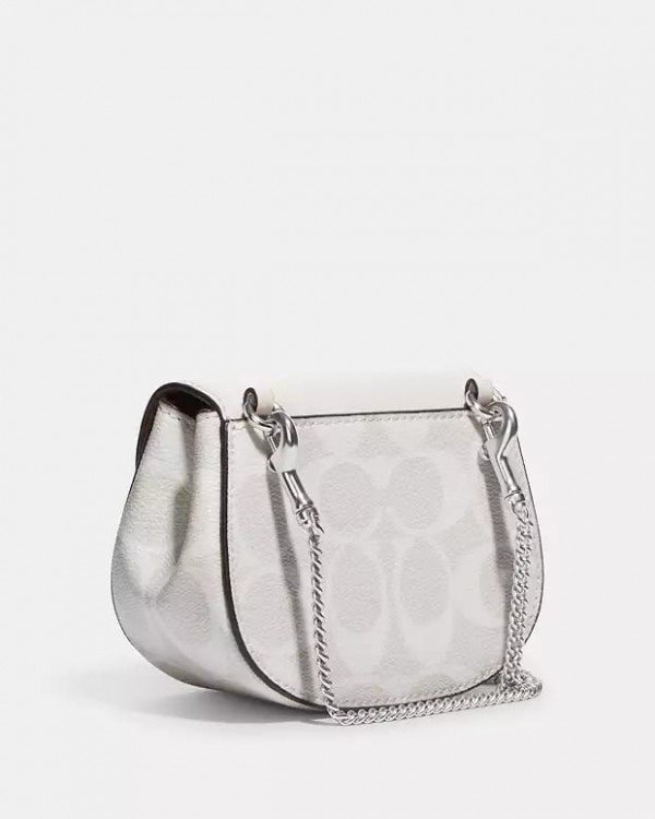 Coach Morgan Card Case On Chain In Signature Canvas White