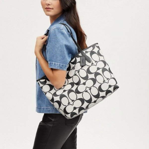 Coach Signature City Limited Edition Premium Tote Bag With OG Magnetic Box & Dust Bag (Black_White-874)(BSB)