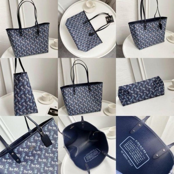 Coach Signature City Tote Bag With OG Box & Dust Bag (Printed_Blue-845)(BSB)