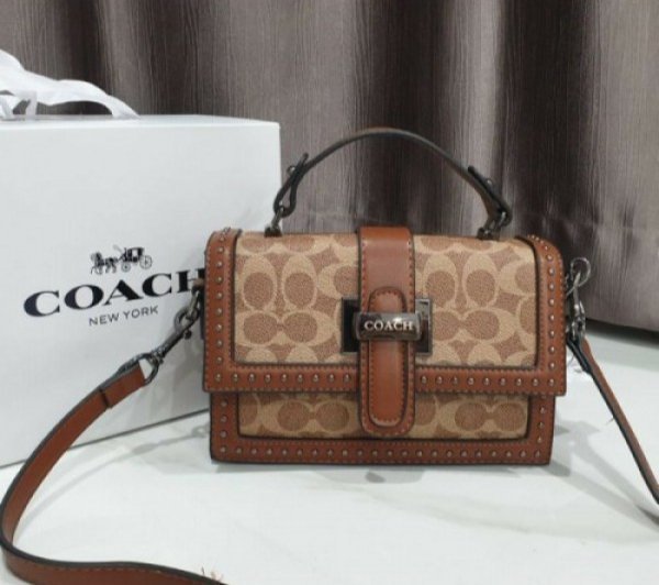 Coach studded Bag with Box Dust Bag Sling Belt Bill