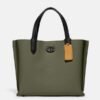 Coach Willow Leather Tote 24 In Colorblock Olive Green With Shoulder Strap & Dust Bag 8561(LB)
