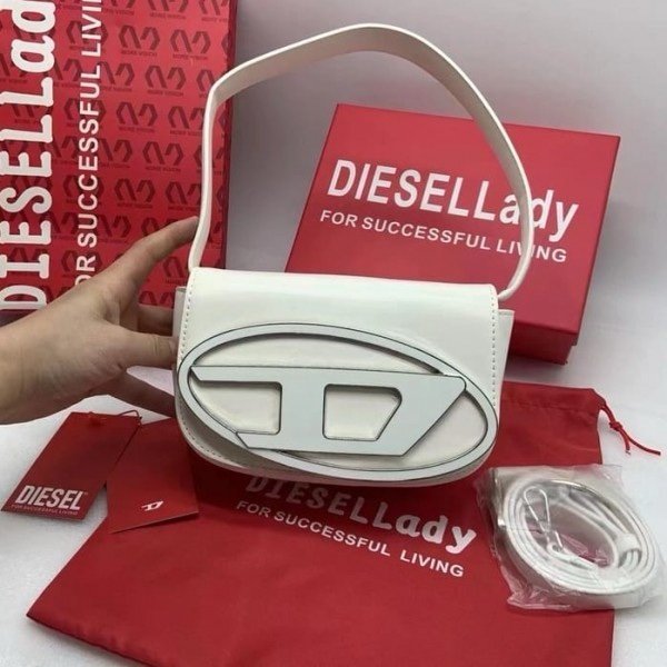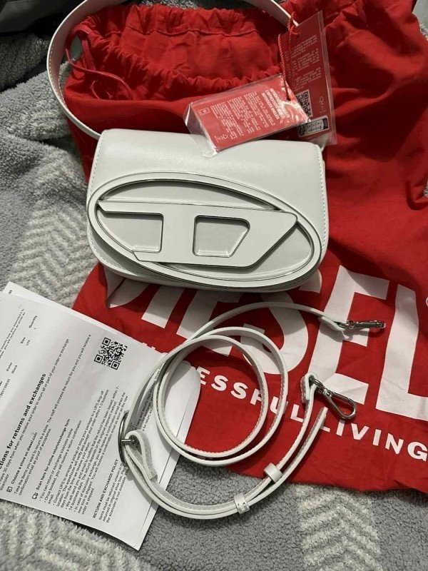 Diesel 1DR Shoulder Bag With OG Box & Dust Bag & Extra Shoulder Strap (White-441)(BSB)