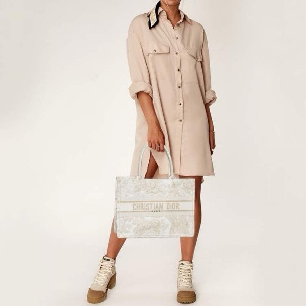 Dior Book Tote Cream Toile De Jouy With OG Box & Dust Bag & Scarf (Cream_Tiger-842)(BSB)