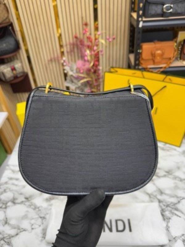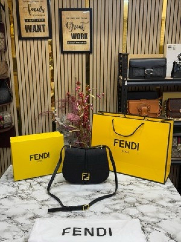 FEND I COMON FF LOGO PLAQUE HANDBAG WITH OG BOX AND DUST BAG INCLUDING CARRY BAG PREMIUM QUALITY (BLACK)(MT)