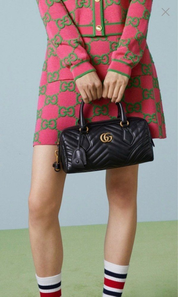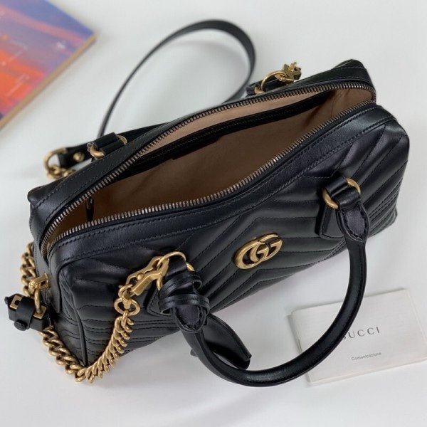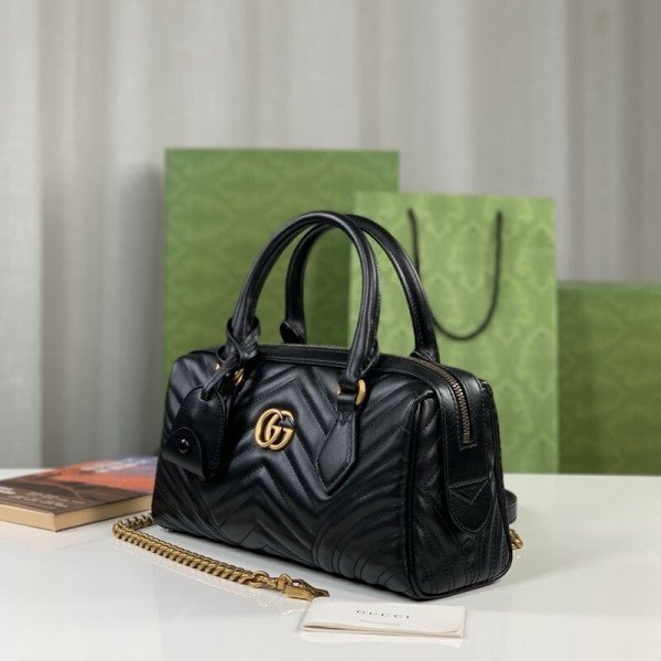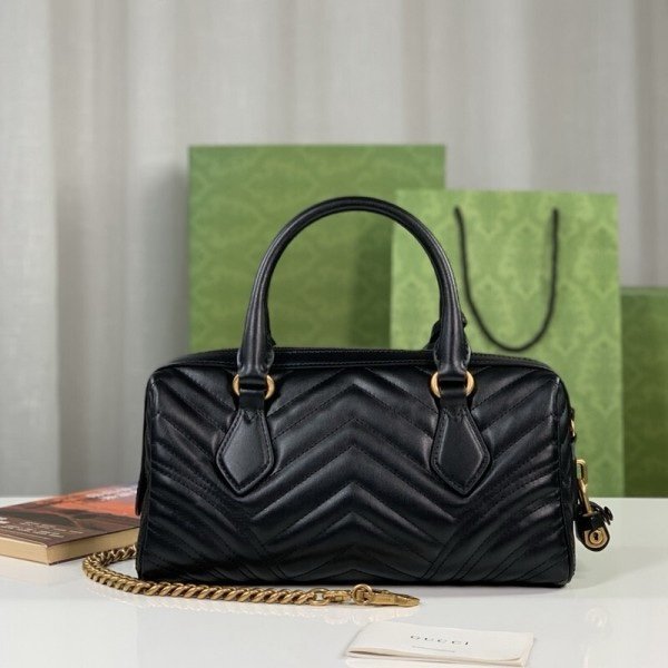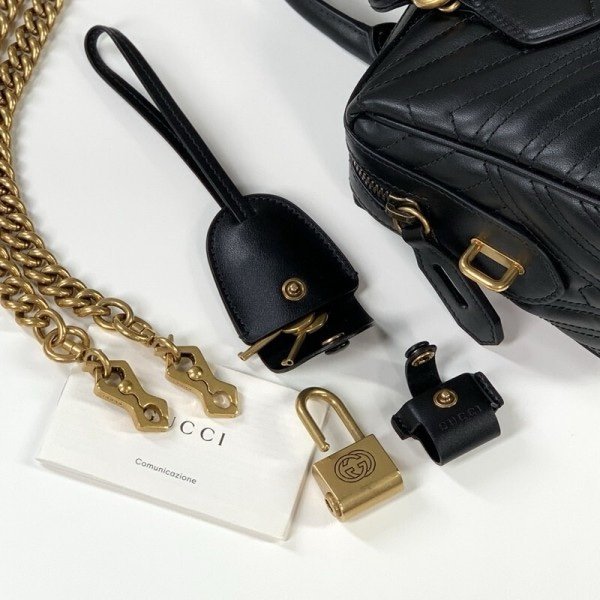 Gucci 746319 Marmont Top Handle Speedy Premium Bag With OG Box & Dust Bag & Carry Bag & Accessories (Black-902)(BSB)