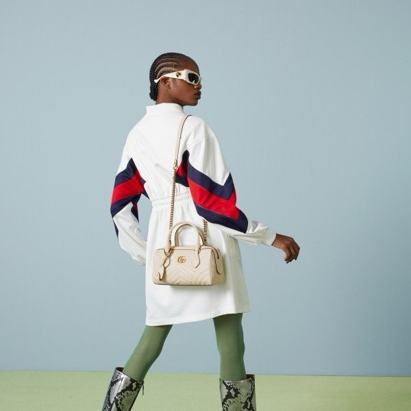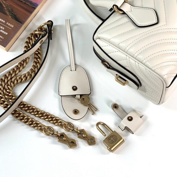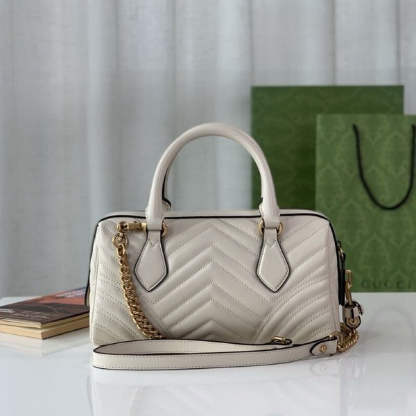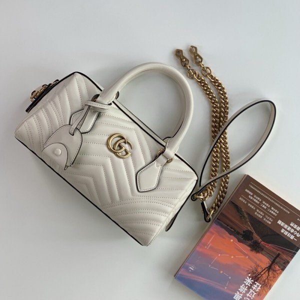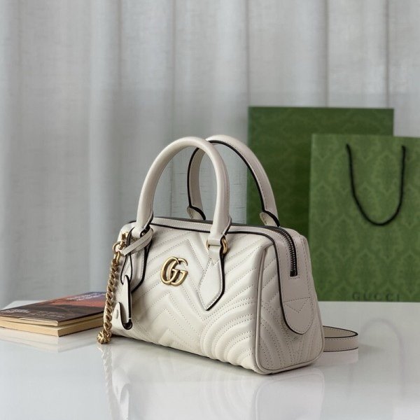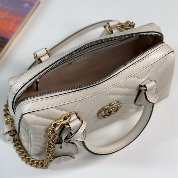 Gucci 746319 Marmont Top Handle Speedy Premium Bag With OG Box & Dust Bag & Carry Bag & Accessories (White-903)(BSB)