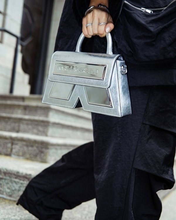 Karl Lagerfeld IKON Crossbody Shoulder Bag With OG Box & Dust Bag (Silver – 922)