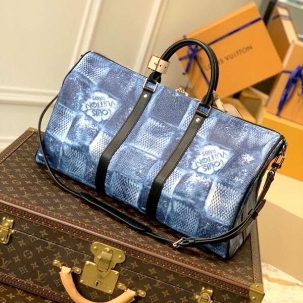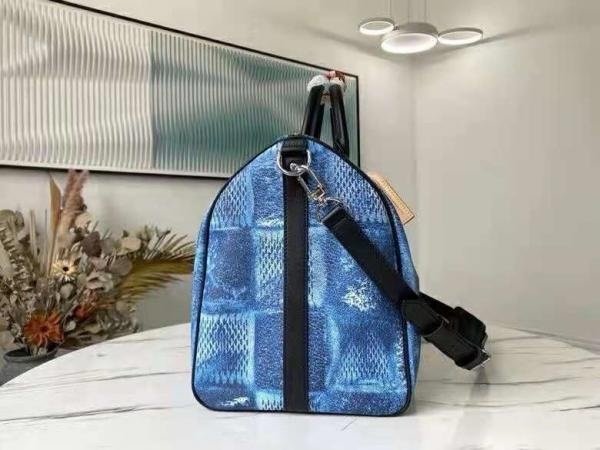 Louis Vuitton LV Damier Keepall Bandoulire Limited Edition Premium Unisex Duffle Bag With Dust Bag & Accessories (Ocean Blue – 683)(BSB)