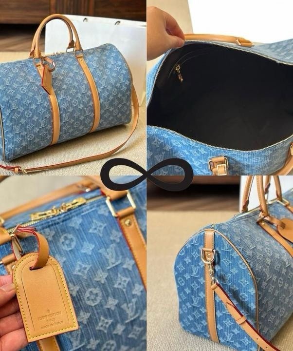 Louis Vuitton LV Keepall Bandoulire NBA Edition Premium Monogram Unisex Duffle Bag With Dust Bag & Accessories (Denim Brown – 684)(BSB)