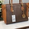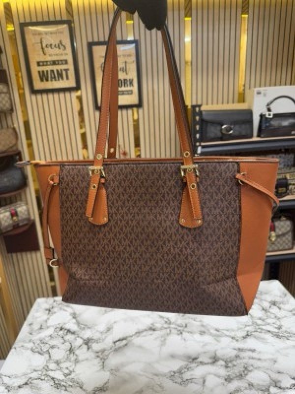 Michael Kore Voyager Leather Satchel Shoulder Bag With Dust Bag (19028_Coffee_Brown)(LB)