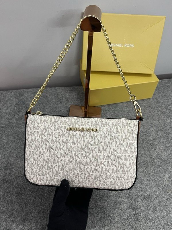 Michael Kors Jet Set Chain Pouchette Bag With OG Box & Dust Bag (Beige Brown 22318)