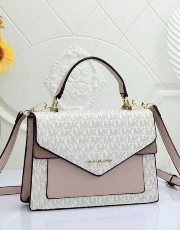 Michael Kors Mk Ludlow Signature Leather Satchel Bag With Box White Pink 3323(LB)