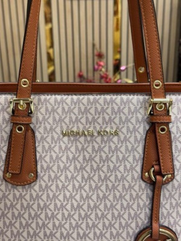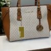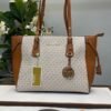 Michael Kors Voyager Leather Satchel Shoulder Bag With Dust Bag (19028_Beige_Brown)(LB)