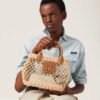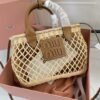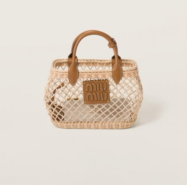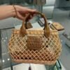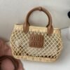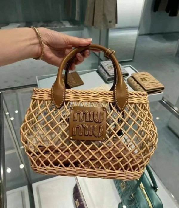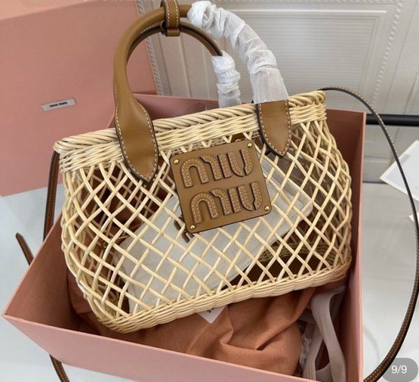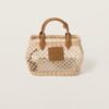 Miu Miu Woven Fabric Handbag With Leather Trim With Pouch With Dust Bag (609 Brown)(LB)