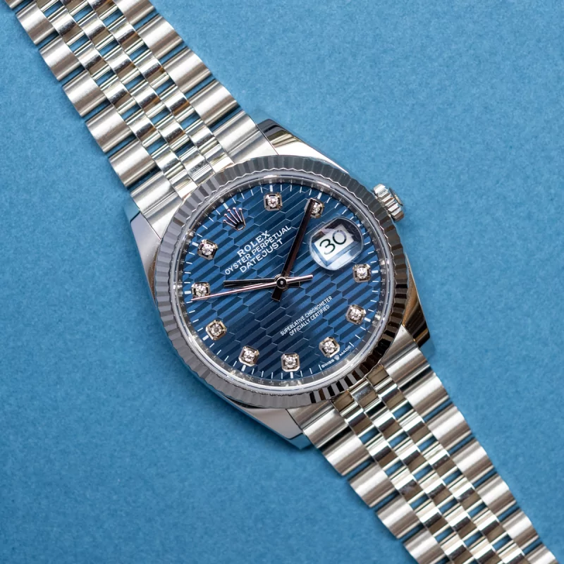 Rolex Date just 41 bright blue, diamond-set