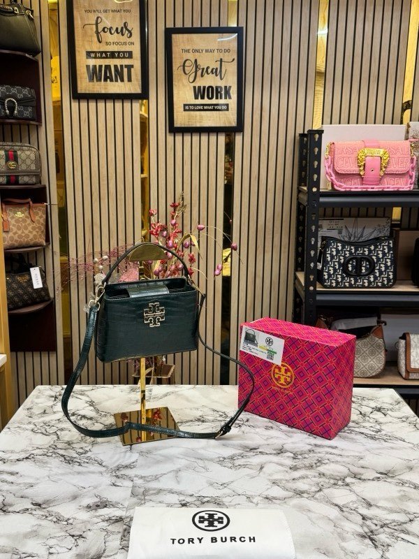 TOR Y BURCH BRITTEN HANDBAG CROCODILE PRINT WITH OG BOX AND DUST BAG AND SLING (GREEN) (S2)(MT)