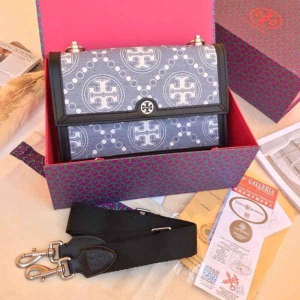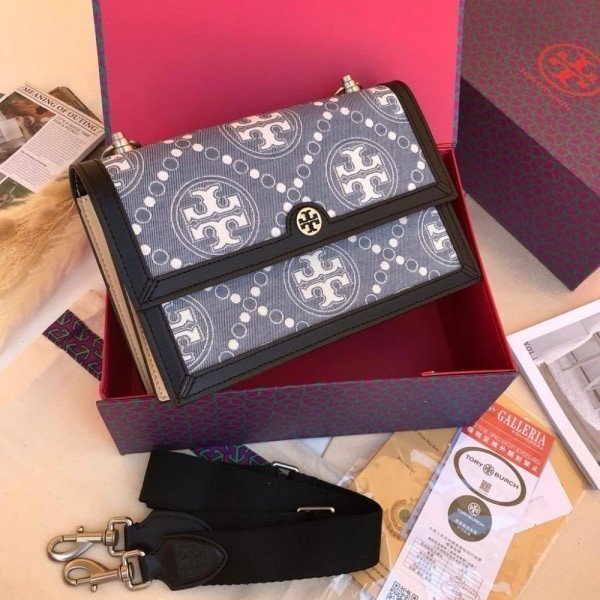 Tory Burch T Monogram Shoulder Bag With Adjustable Strap With OG Box & Dust Bag (Black – 616)(BSB)