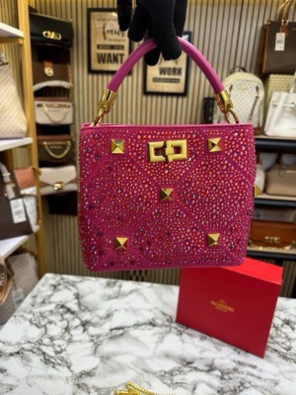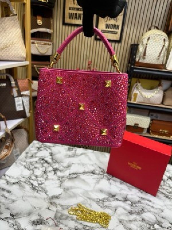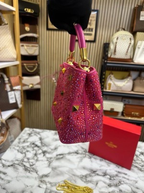 VALENTIN O RHINESTONE LAVIE HANDBAG WITH BOX CARD DUST BAG (PINK)(MT)