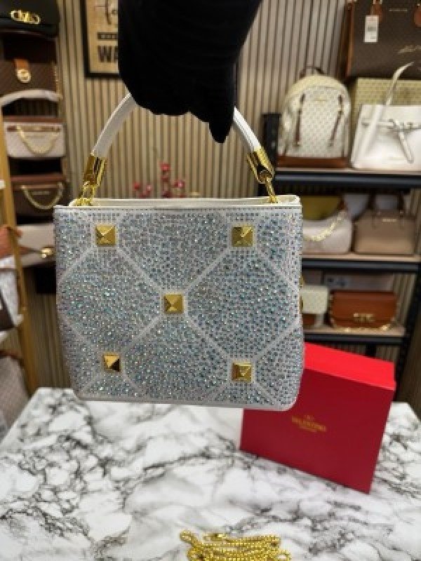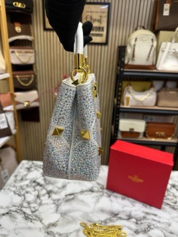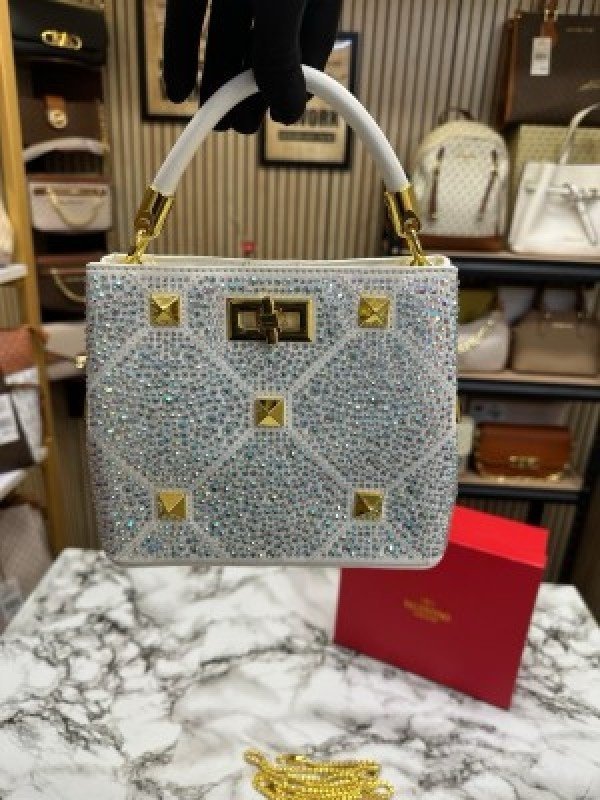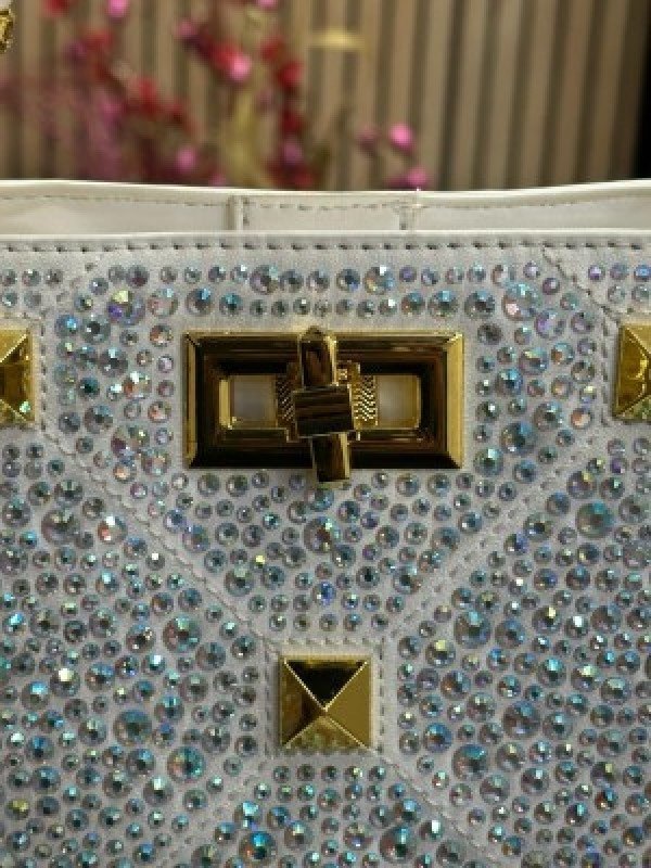 VALENTIN O RHINESTONE LAVIE HANDBAG WITH BOX CARD DUST BAG (WHITE)(MT)