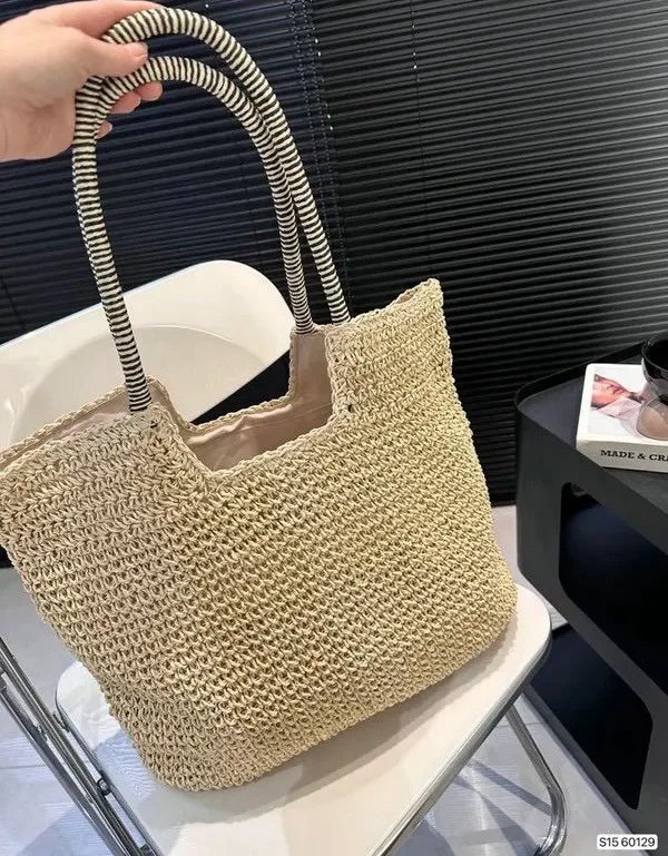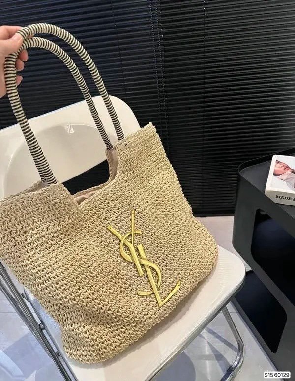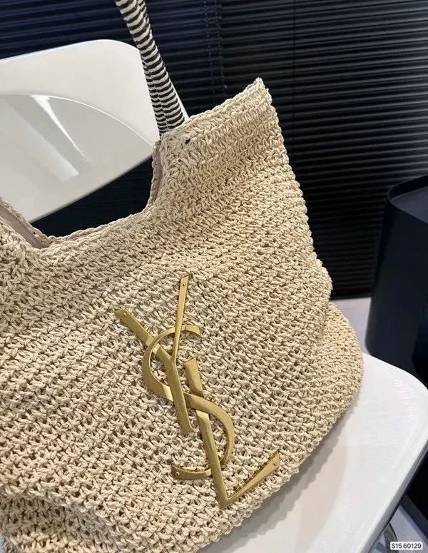 YSL Saint Laurent ICare Raffia Jute Tote Bag With OG Box & Dust Bag (Beige – 992)(BSB)